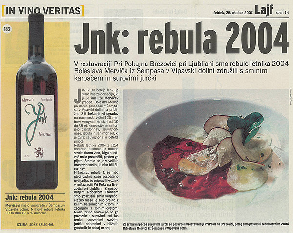 At the restaurant Pri Poku at Brezovica near Ljubljana we combined the 2004 vintage rebula of Boleslav Mervič from Šempas in Vipavska valley with a deer carpaccio and raw boletus mushrooms.